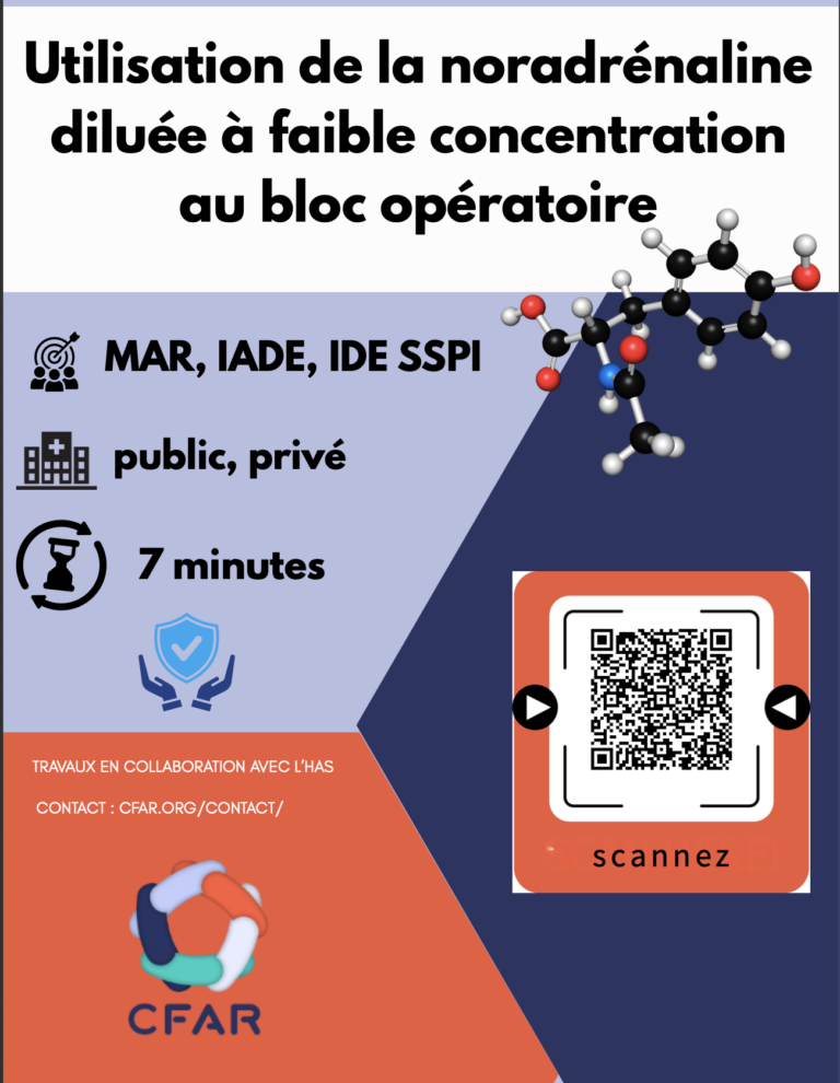 Enquête CFAR affiche (A4) diluée à faible concentration au bloc opératoire Dans le cadre de l’élaboration d’une fiche Solution Sécurité Patient (SSP2) coordonnée par la Haute Autorité de Santé (HAS)